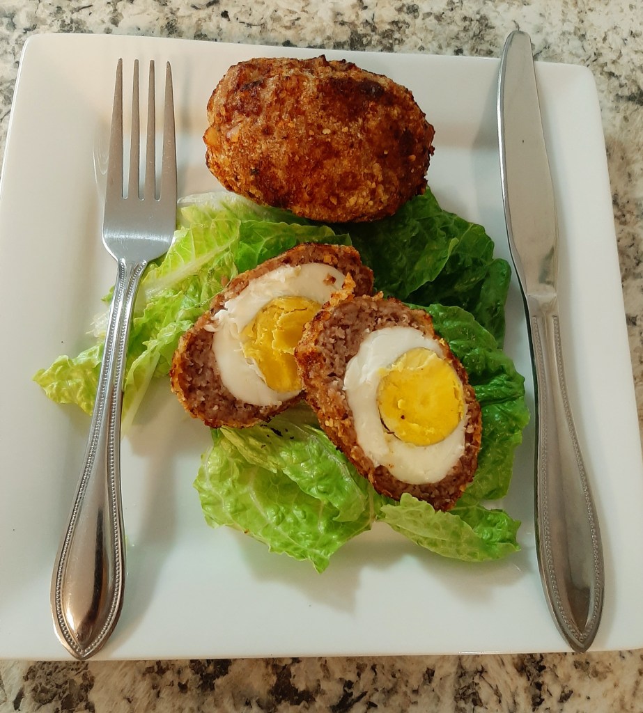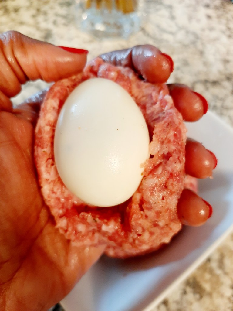 Nearly 10 years ago, around Mother’s Day I spent the weekend with my sister-in-love to assist with her first tea party. It was a wonderful weekend filled with love and laughs, shopping, decorating and cooking brunch style dishes. Scotch Eggs were one of the menu items and I was in charge of boiling and deshelling the eggs. At the time I had never heard of Scotch Eggs but I was intrigued about the techniques of the cooking process which included us deep frying them until golden brown.